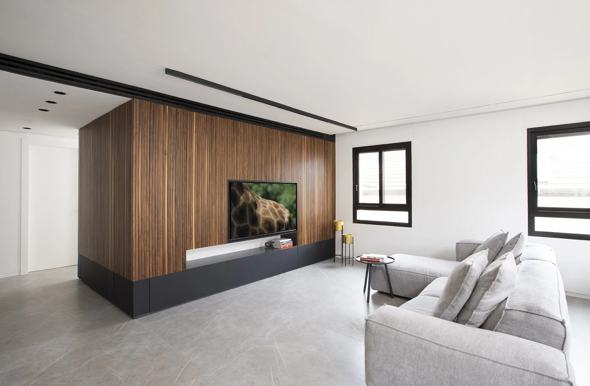 כאן אנו יכולים לחוש את המעבר והשילוב של פנים וחוץ, לא רק כדי להבטיח את פרטיות המגורים, אלא גם כדי ליצור הפסקה וקצב חזותי. ניתן להרגיש את החלל המרווח והמואר, את מסלול ההליכה החלק והנוח, את האור הזורם בחלל, זהו בית רגוע ועדין.
